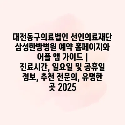 대전동구의료법인 선인의료재단 삼성한방병원 예약 홈페이지와 어플 앱 설명서 | 진료시간, 일요일 및 공휴일 정보, 추천 전연락, 유명한 곳 2025 삼성한방병원은 편리한 예약 시스템을 알려드려 환자들이… 더 보기 »대전동구의료법인 선인의료재단 삼성한방병원 예약 홈페이지와 어플 앱 가이드 | 진료시간, 일요일 및 공휴일 정보, 추천 전문의, 유명한 곳 2025
