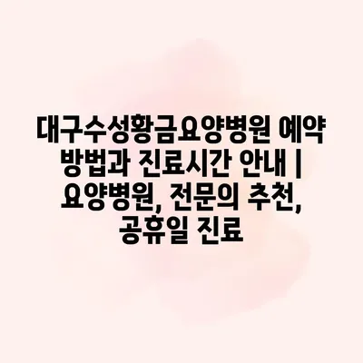 대구수성황금요양병원 예약 방법과 진료시간 공지 대구수성황금요양병원에 예약을 원하시는 경우, 전화 또는 인터넷을 통해 간편하게 예약이 할 수 있습니다. 전화 예약은 오전 9시부터 오후 5시까지 가능하며,… 더 보기 »대구수성황금요양병원 예약 방법과 진료시간 안내 | 요양병원, 전문의 추천, 공휴일 진료