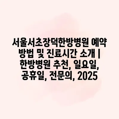 서울서초장덕한방병원 예약 방법 및 진료시간 소개 | 한방병원 추천, 일요일, 공휴일, 전연락, 2025 서울서초장덕한방병원은 서울 서초구에 위치하며, 다양한 한방 치료를 알려알려드리겠습니다. 예약은 병원 홈페이지를 통해… 더 보기 »서울서초장덕한방병원 예약 방법 및 진료시간 소개 | 한방병원 추천, 일요일, 공휴일, 전문의, 2025