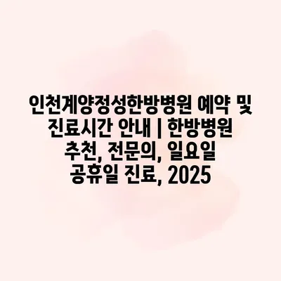 인천계양정성한방병원 예약 및 진료시간 안내 | 한방병원 추천, 전문의, 일요일 공휴일 진료, 2025