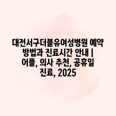 대전서구더블유여성병원 예약 방법과 진료시간 안내 | 어플, 의사 추천, 공휴일 진료, 2025