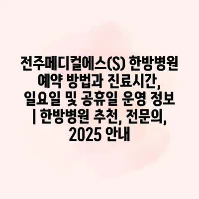 전주메디컬에스(S) 한방병원은 편리한 예약 방법과 함께 전문적인 치료를 알려알려드리겠습니다. 예약은 병원 공식 웹사이트 또는 전화를 통해 간편하게 진행할 수 있으며, 필요 시 방문하여 직접 예약할… 더 보기 »전주메디컬에스(S) 한방병원 예약 방법과 진료시간, 일요일 및 공휴일 운영 정보 | 한방병원 추천, 전문의, 2025 안내