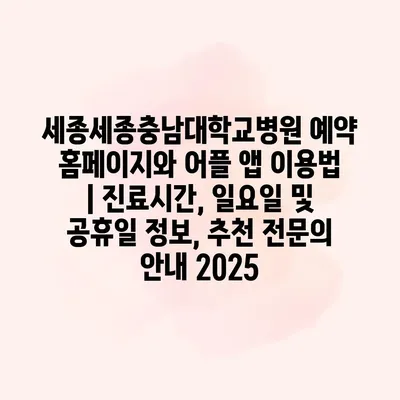 세종세종충남대학교병원 예약 홈페이지와 어플 앱 이용법 | 진료시간, 일요일 및 공휴일 정보, 추천 전연락 공지 2025에 대해 알아보겠습니다. 이 병원의 예약 시스템은 매우 간편하고 직관적입니다.… 더 보기 »세종세종충남대학교병원 예약 홈페이지와 어플 앱 이용법 | 진료시간, 일요일 및 공휴일 정보, 추천 전문의 안내 2025