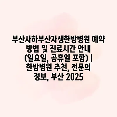 부산사하부산자생한방병원 예약 방법 및 진료시간 공지 (일요일, 공휴일 포함) | 한방병원 추천, 전연락 정보, 부산 2025 부산사하부산자생한방병원은 한방 치료의 전문성을 갖춘 병원으로, 다양한 한방 질환… 더 보기 »부산사하부산자생한방병원 예약 방법 및 진료시간 안내 (일요일, 공휴일 포함) | 한방병원 추천, 전문의 정보, 부산 2025