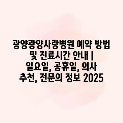 광양광양사랑병원 예약 방법 및 진료시간 안내 | 일요일, 공휴일, 의사 추천, 전문의 정보 2025