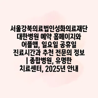 서울강북의료법인성화의료재단 대한병원은 환자분들을 위한 편리한 예약 홈페이지와 어플앱을 제공하고 있습니다. 이러한 시스템을 통해 원하시는 날짜와 시간에 전연락와의 예약을 손쉽게 진행할 수 있습니다. 특히, 일요일과 공휴일에도… 더 보기 »서울강북의료법인성화의료재단 대한병원 예약 홈페이지와 어플앱, 일요일 공휴일 진료시간과 추천 전문의 정보 | 종합병원, 유명한 치료센터, 2025년 안내