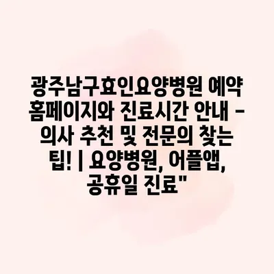 광주남구효인요양병원 예약 홈페이지와 진료시간 공지 – 의사 추천 및 전연락 찾는 팁! 효인요양병원은 전문적인 의료 서비스를 제공하는 곳으로, 이용자들이 쉽게 방문할 수 있도록 예약 홈페이지를… 더 보기 »광주남구효인요양병원 예약 홈페이지와 진료시간 안내 – 의사 추천 및 전문의 찾는 팁! | 요양병원, 어플앱, 공휴일 진료”