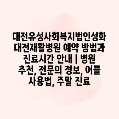 대전유성사회복지법인성화 대전재활병원은 환자들에게 최상의 서비스를 제공하기 위해 다양한 진료 방법과 편리한 예약 시스템을 운영하고 있습니다. 예약 방법은 크게 두 가지로 나뉩니다. 첫째, 전화 예약이 가능하며,… 더 보기 »대전유성사회복지법인성화 대전재활병원 예약 방법과 진료시간 안내 | 병원 추천, 전문의 정보, 어플 사용법, 주말 진료