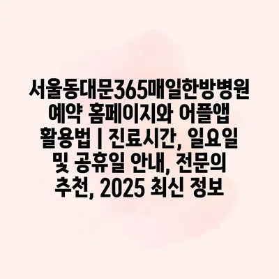 서울동대문365매일한방병원 예약 홈페이지와 어플앱 활용법에 대해 알아보겠습니다. 이 병원은 전통 한방 치료를 제공하며, 예약 시스템을 통해 보다 간편하게 진료를 받을 수 있습니다. 홈페이지나 어플에서 쉽게… 더 보기 »서울동대문365매일한방병원 예약 홈페이지와 어플앱 활용법 | 진료시간, 일요일 및 공휴일 안내, 전문의 추천, 2025 최신 정보
