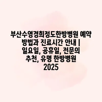 부산수영경희정도한방병원 예약 방법과 진료시간 안내 | 일요일, 공휴일, 전문의 추천, 유명 한방병원 2025