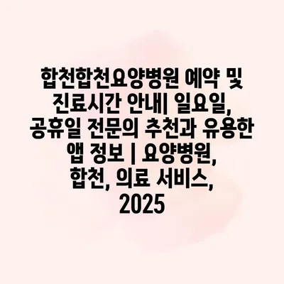 합천합천요양병원 예약 및 진료시간 공지| 일요일, 공휴일 전연락 추천과 유용한 앱 정보 | 요양병원, 합천, 의료 서비스, 2025 합천합천요양병원은 전문적인 의료 서비스를 제공하는 의료기관으로, 환자… 더 보기 »합천합천요양병원 예약 및 진료시간 안내| 일요일, 공휴일 전문의 추천과 유용한 앱 정보 | 요양병원, 합천, 의료 서비스, 2025
