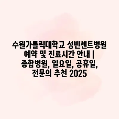 수원가톨릭대학교 성빈센트병원 예약 및 진료시간 공지 | 종합병원, 일요일, 공휴일, 전연락 추천 2025 수원가톨릭대학교 성빈센트병원은 지역 주민과 환자에게 신뢰할 수 있는 의료 서비스를 제공하고 있습니다.… 더 보기 »수원가톨릭대학교 성빈센트병원 예약 및 진료시간 안내 | 종합병원, 일요일, 공휴일, 전문의 추천 2025