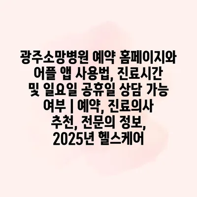 광주소망병원 예약 홈페이지와 어플 앱 사용법, 진료시간 및 일요일 공휴일 상담 가능 여부 | 예약, 진료의사 추천, 전문의 정보, 2025년 헬스케어