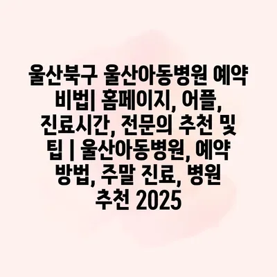 울산북구 울산아동병원 예약 비법| 홈페이지, 어플, 진료시간, 전문의 추천 및 팁 | 울산아동병원, 예약 방법, 주말 진료, 병원 추천 2025