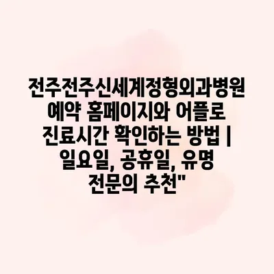 전주전주신세계정형외과병원 예약 홈페이지와 어플로 진료시간 확인하는 방법 | 일요일, 공휴일, 유명 전문의 추천”