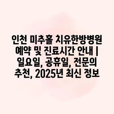 인천 미추홀 치유한방병원 예약 및 진료시간 안내 | 일요일, 공휴일, 전문의 추천, 2025년 최신 정보