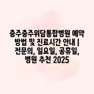 충주충주위담통합병원 예약 방법 및 진료시간 안내 | 전문의, 일요일, 공휴일, 병원 추천 2025