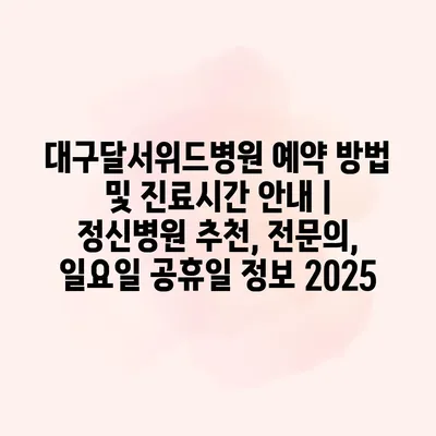 대구달서위드병원 예약 방법 및 진료시간 안내 | 정신병원 추천, 전문의, 일요일 공휴일 정보 2025