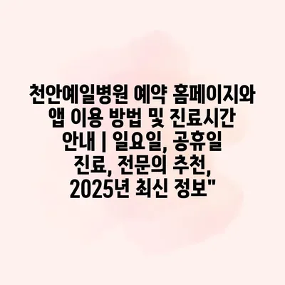 천안예일병원 예약 홈페이지와 앱 이용 방법 및 진료시간 안내 | 일요일, 공휴일 진료, 전문의 추천, 2025년 최신 정보”