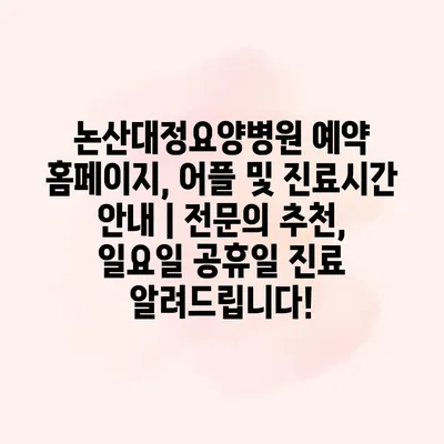논산대정요양병원 예약 홈페이지, 어플 및 진료시간 안내 | 전문의 추천, 일요일 공휴일 진료 알려드립니다!