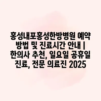 홍성내포홍성한방병원 예약 방법 및 진료시간 안내 | 한의사 추천, 일요일 공휴일 진료, 전문 의료진 2025
