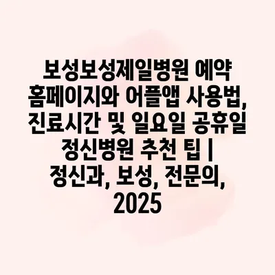 보성보성제일병원 예약 홈페이지와 어플앱 사용법, 진료시간 및 일요일 공휴일 정신병원 추천 팁 | 정신과, 보성, 전문의, 2025