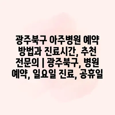 광주북구 아주병원 예약 방법과 진료시간, 추천 전문의 | 광주북구, 병원 예약, 일요일 진료, 공휴일