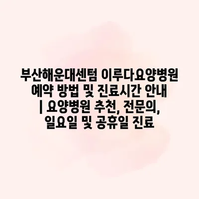 부산해운대센텀 이루다요양병원은 전문적인 요양 치료를 제공하는 곳으로 알려져 있습니다. 예약 방법은 간단합니다. 전화 또는 인터넷을 통해 미리 예약을 하시면 됩니다. 병원 홈페이지에 방문하시면 자세한 예약… 더 보기 »부산해운대센텀 이루다요양병원 예약 방법 및 진료시간 안내 | 요양병원 추천, 전문의, 일요일 및 공휴일 진료