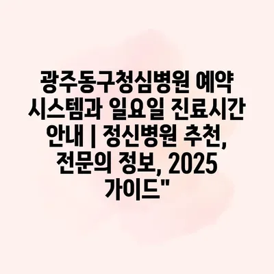 광주동구청심병원 예약 시스템과 일요일 진료시간 공지 | 정신병원 추천, 전연락 정보, 2025 설명서 정신 건강은 우리 삶에서 매우 중요한 요소입니다. 광주동구청심병원은 정신질환 치료와 상담에 최적화된… 더 보기 »광주동구청심병원 예약 시스템과 일요일 진료시간 안내 | 정신병원 추천, 전문의 정보, 2025 가이드”