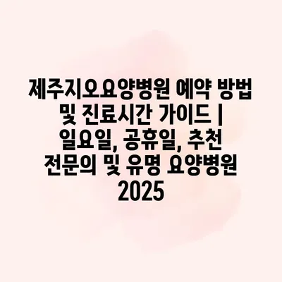 제주지오요양병원 예약 방법 및 진료시간 가이드 | 일요일, 공휴일, 추천 전문의 및 유명 요양병원 2025