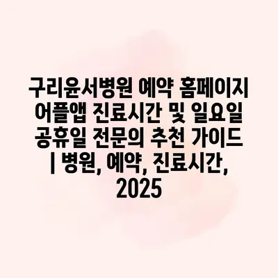 구리윤서병원 예약 홈페이지 어플앱 진료시간 및 일요일 공휴일 전문의 추천 가이드 | 병원, 예약, 진료시간, 2025