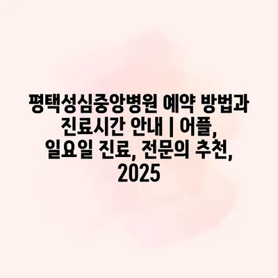 평택성심중앙병원 예약 방법과 진료시간 안내 | 어플, 일요일 진료, 전문의 추천, 2025