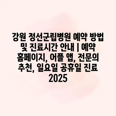 강원 정선군립병원 예약 방법 및 진료시간 안내 | 예약 홈페이지, 어플 앱, 전문의 추천, 일요일 공휴일 진료 2025