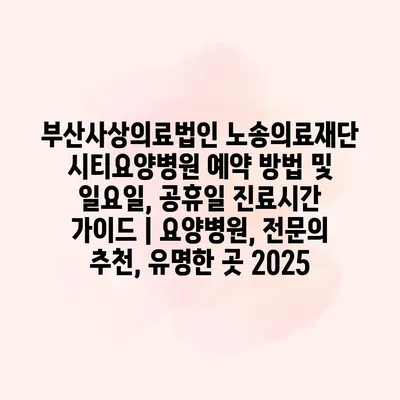 부산사상의료법인 노송의료재단 시티요양병원 예약 방법 및 일요일, 공휴일 진료시간 가이드 | 요양병원, 전문의 추천, 유명한 곳 2025