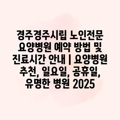 경주경주시립 노인전문 요양병원 예약 방법 및 진료시간 안내 | 요양병원 추천, 일요일, 공휴일, 유명한 병원 2025