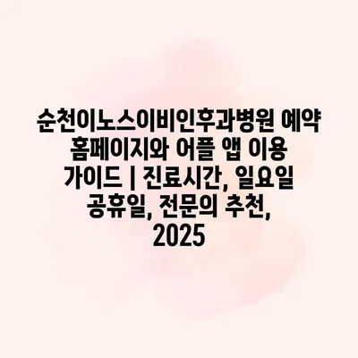 순천이노스이비인후과병원 예약 홈페이지와 어플 앱 이용 가이드 | 진료시간, 일요일 공휴일, 전문의 추천, 2025