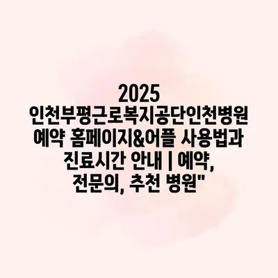 2025 인천부평근로복지공단인천병원 예약 홈페이지&어플 사용법과 진료시간 안내 | 예약, 전문의, 추천 병원”