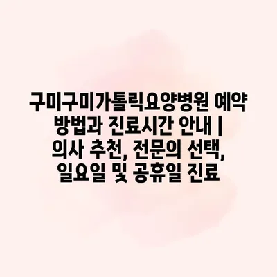구미구미가톨릭요양병원 예약 방법과 진료시간 공지에 대해 소개합니다. 예약은 전화 또는 병원 홈페이지를 통해 간편하게 진행할 수 있습니다. 전문가 상담이 필요하다면, 사전에 선택한 의사에게 직접 연락하여… 더 보기 »구미구미가톨릭요양병원 예약 방법과 진료시간 안내 | 의사 추천, 전문의 선택, 일요일 및 공휴일 진료