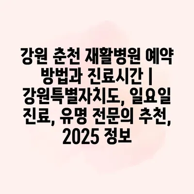 강원 춘천 재활병원 예약 방법과 진료시간에 대한 내용을 공지합니다. 강원특별자치도에 위치한 이곳은 전문적인 재활 치료를 제공하며, 환자의 빠른 회복을 지원합니다. 예약 방법은 간단하며, 전화 또는… 더 보기 »강원 춘천 재활병원 예약 방법과 진료시간 | 강원특별자치도, 일요일 진료, 유명 전문의 추천, 2025 정보