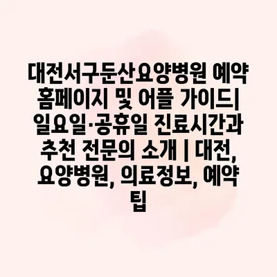 대전서구둔산요양병원 예약 홈페이지 및 어플 설명서입니다. 요양병원에 대한 정보가 필요하신가요? 이 병원은 대전 서구에 위치하며, 환자들의 편의를 위해 다양한 기능을 제공하는 예약 시스템을 자랑합니다. 홈페이지와… 더 보기 »대전서구둔산요양병원 예약 홈페이지 및 어플 가이드| 일요일·공휴일 진료시간과 추천 전문의 소개 | 대전, 요양병원, 의료정보, 예약 팁