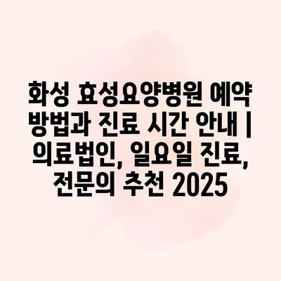 화성 효성요양병원 예약 방법과 진료 시간 공지 | 의료법인, 일요일 진료, 전연락 추천 2025 화성 효성요양병원은 환자 중심의 편안한 진료 환경을 제공하며, 다양한 전연락가 상주하여… 더 보기 »화성 효성요양병원 예약 방법과 진료 시간 안내 | 의료법인, 일요일 진료, 전문의 추천 2025