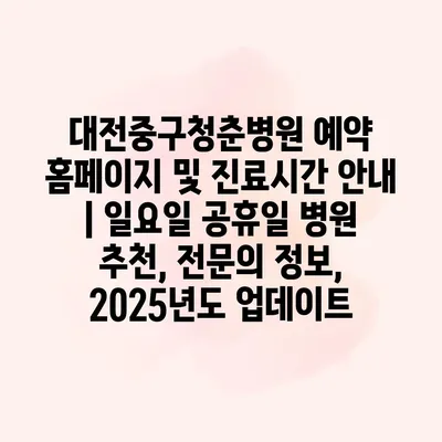 대전중구청춘병원 예약 홈페이지 및 진료시간 안내 | 일요일 공휴일 병원 추천, 전문의 정보, 2025년도 업데이트