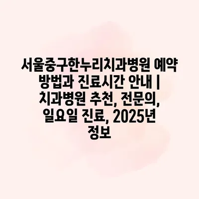서울중구한누리치과병원 예약 방법과 진료시간 안내 | 치과병원 추천, 전문의, 일요일 진료, 2025년 정보