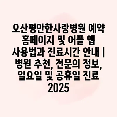오산평안한사랑병원 예약 홈페이지 및 어플 앱 사용법과 진료시간 안내 | 병원 추천, 전문의 정보, 일요일 및 공휴일 진료 2025