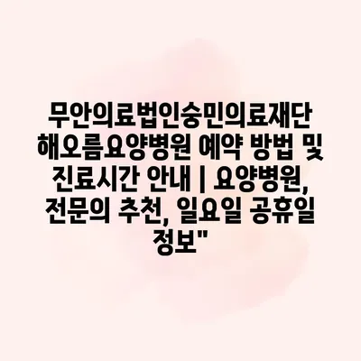 무안의료법인숭민의료재단 해오름요양병원 예약 방법 및 진료시간 안내 | 요양병원, 전문의 추천, 일요일 공휴일 정보”