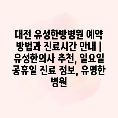 대전 유성한방병원 예약 방법과 진료시간 안내 | 유성한의사 추천, 일요일 공휴일 진료 정보, 유명한 병원