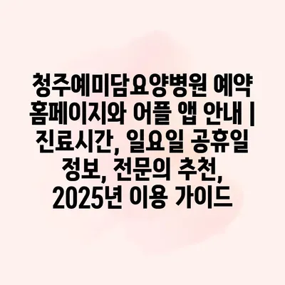 청주예미담요양병원 예약 홈페이지와 어플 앱 안내 | 진료시간, 일요일 공휴일 정보, 전문의 추천, 2025년 이용 가이드