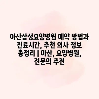 아산삼성요양병원 예약 방법과 진료시간, 추천 의사 정보 총정리 | 아산, 요양병원, 전문의 추천