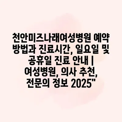 천안미즈나래여성병원 예약 방법과 진료시간, 일요일 및 공휴일 진료 안내 | 여성병원, 의사 추천, 전문의 정보 2025″