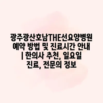 광주광산호남THE선요양병원 예약 방법 및 진료시간 안내 | 한의사 추천, 일요일 진료, 전문의 정보